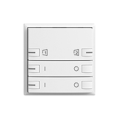 Motor 1-Kanal • Abdeckset zeptrionAIR • Die oberen Smart-Tasten ermöglichen die Bedienung von zeptrionAIR Szenen per WLAN • Untere Tasten für Motor 1-Kanal • 2fach-Bedienung • zeptrionAIR Szene unbedruckt auf 2 Smart-Tasten • F • weiss