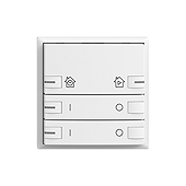 ON/OFF 1-Kanal • Abdeckset zeptrionAIR • Die oberen Smart-Tasten ermöglichen die Bedienung von zeptrionAIR Szenen per WLAN • Untere Tasten für ON/OFF 1-Kanal • 2fach-Bedienung • zeptrionAIR Szene auf 4 Smart-Tasten • F • weiss