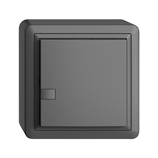 EDIZIOdue colore • UNI-Taster • 12-48 V DC / 12-36 V AC • Schaltstrom min 1 mA, max. 50 mA • Max. 14 L • Mit Schraubklemmen • Ohne LED • Einfach-Taste • 1-Tastenbedienung • Anbauhöhe 44 mm • FX.39 • dunkelgrau • IP20 • 74 x 74 mm • 1-Tastenbedienung