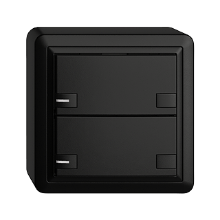 EDIZIOdue colore •  UNI-Taster •  12-48 V DC / 12-36 V AC •  Schaltstrom min 1 mA, max. 50 mA •  Max. 14 L •  Mit Schraubklemmen •  Mit LED Blau •  Zweifach-Taste •  2-Tastenbedienung •  Anbauhöhe 44 mm •  FX.39 •  schwarz •  IP20 •  74 x 74 mm •  2-Tastenbedienung