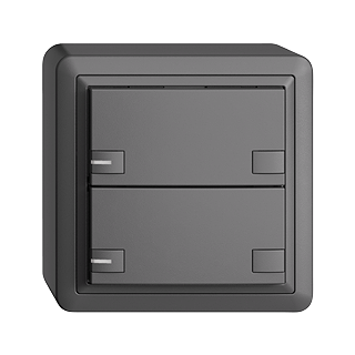 EDIZIOdue colore •  UNI-Taster •  12-48 V DC / 12-36 V AC •  Schaltstrom min 1 mA, max. 50 mA •  Max. 14 L •  Mit Schraubklemmen •  Mit LED Blau •  Zweifach-Taste •  2-Tastenbedienung •  Anbauhöhe 44 mm •  FX.39 •  dunkelgrau •  IP20 •  74 x 74 mm •  2-Tastenbedienung