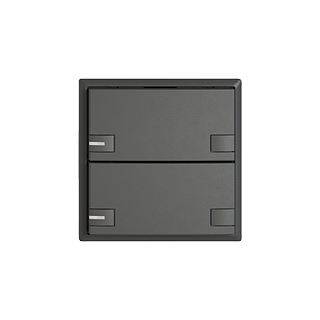 EDIZIO.liv •  UNI-Taster •  12-48 V DC / 12-36 V AC •  Schaltstrom min 1 mA, max. 50 mA •  Max. 14 L •  Mit Schraubklemmen •  Mit LED Blau •  Zweifach-Taste •  2-Tastenbedienung •  SNAPFIX® Befestigungssystem •  Einbautiefe 17 mm •  G.A •  dunkelgrau •  IP20 •  60 x 60 mm
