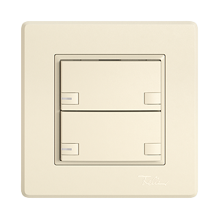 EDIZIO.liv • UNI-Taster • 12-48 V DC / 12-36 V AC • Schaltstrom min 1 mA, max. 50 mA • Max. 14 L • Mit Schraubklemmen • Mit LED Blau • Zweifach-Taste • 2-Tastenbedienung • SNAPFIX® Befestigungssystem • Einbautiefe 17 mm • GMI.A • crema • IP20 • 96 x 96 mm (93 x 93 mm)