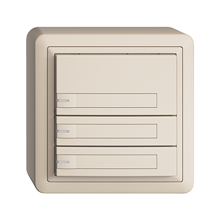 EDIZIOdue colore • UNI-Taster • 12-48 V DC / 12-36 V AC • Schaltstrom min 1 mA, max. 50 mA • Max. 14 L • Mit Schraubklemmen • Mit LED Blau • Mit Papiereinlage • Dreifach-Taste • 1-Tastenbedienung • Anbauhöhe 44 mm • FX.39 • crema • IP20 • 74 x 74 mm • 1-Tastenbedienung