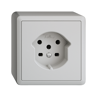 Steckdose Typ 15 •  10 A, 250 V AC, L + N + PE •  10 A, 440 V AC, 3 L + N + PE •  Mit Steckklemmen •  Anbauhöhe 54 mm •  FX.54 •  hellgrau •  IP20 •  74 x 74 mm